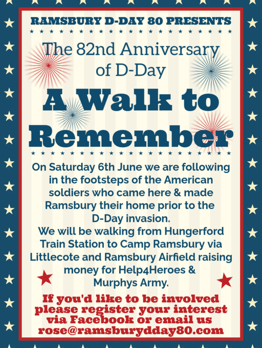 Leaving Hungerford Train Station stopping at Littlecoate House Hotel for a comfort & refreshment break before walking up to Ramsbury Airfield for a service of remembrance. Then down to the Rockery for a short break before the friendly Invasion Event starts.
